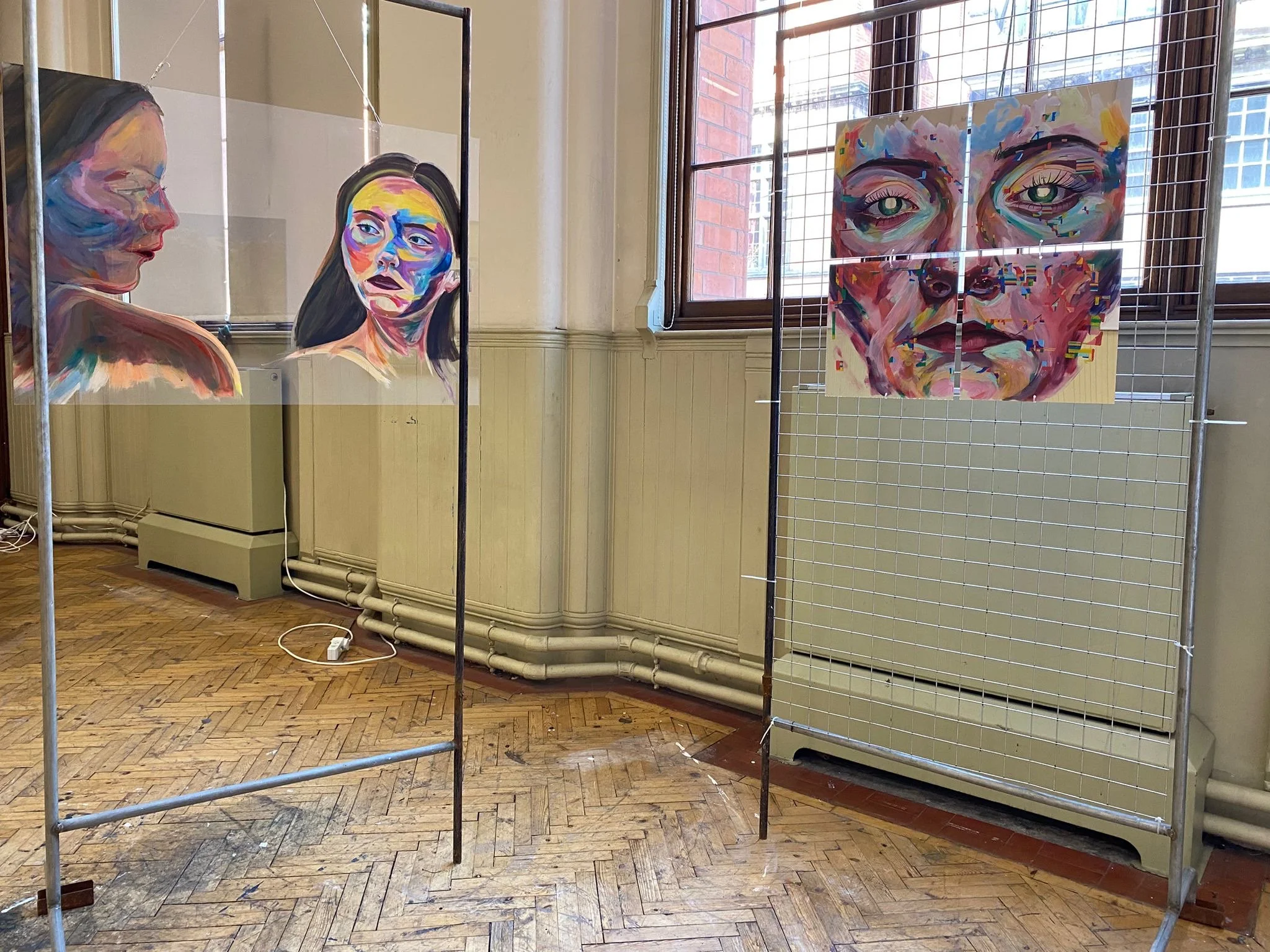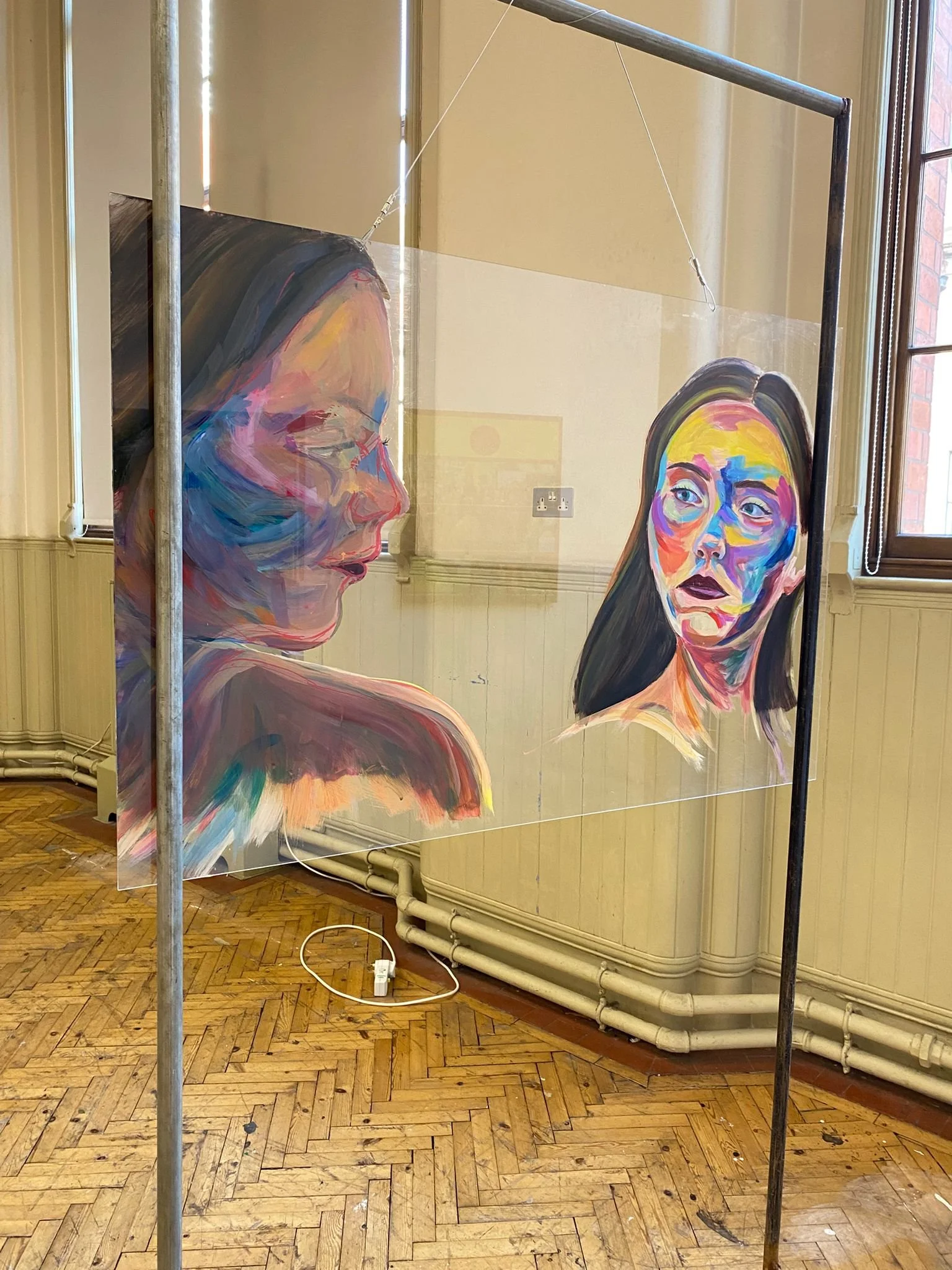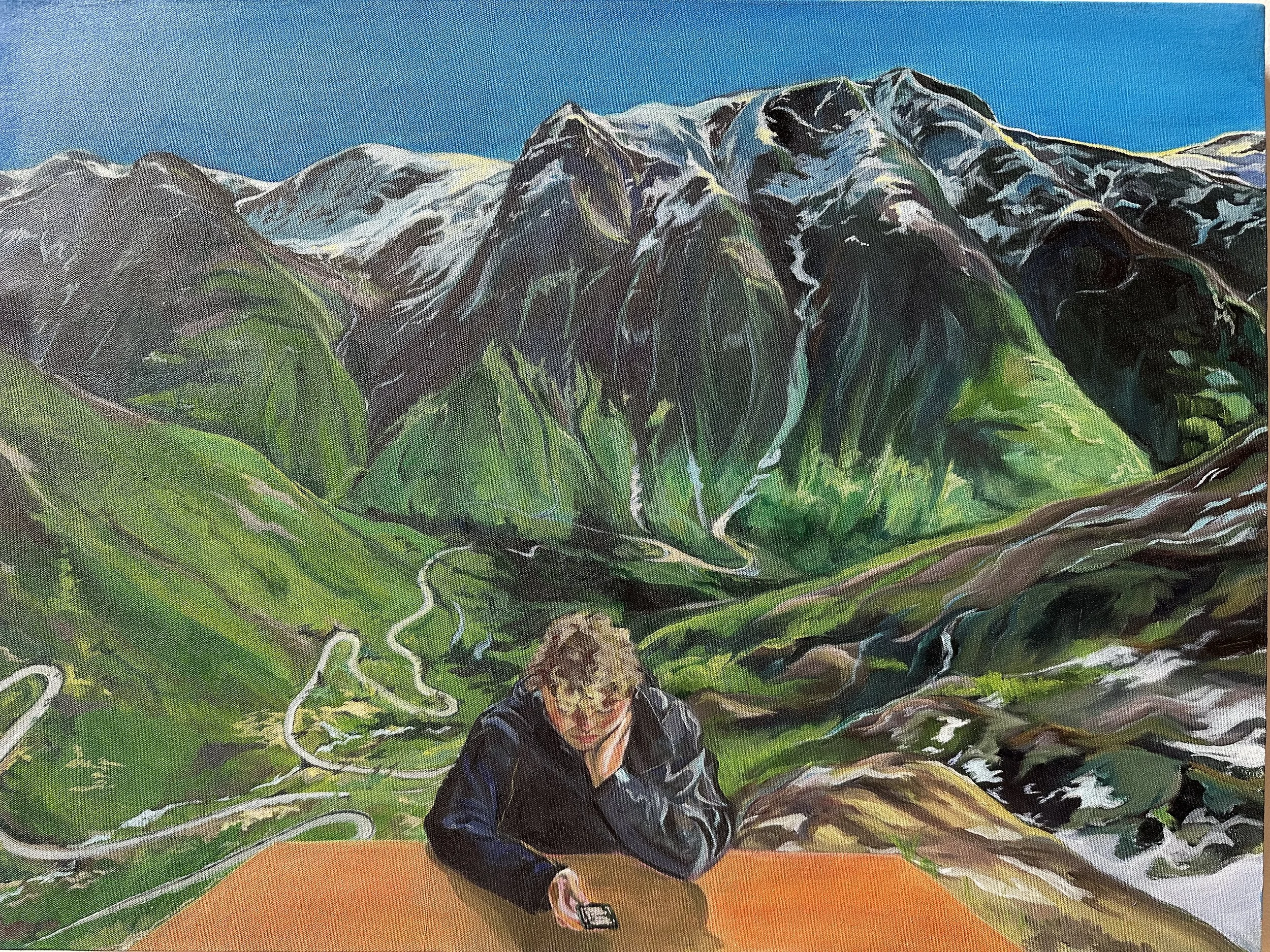 Ranging in materials, each work reflects a spectator looking into a simulated world.