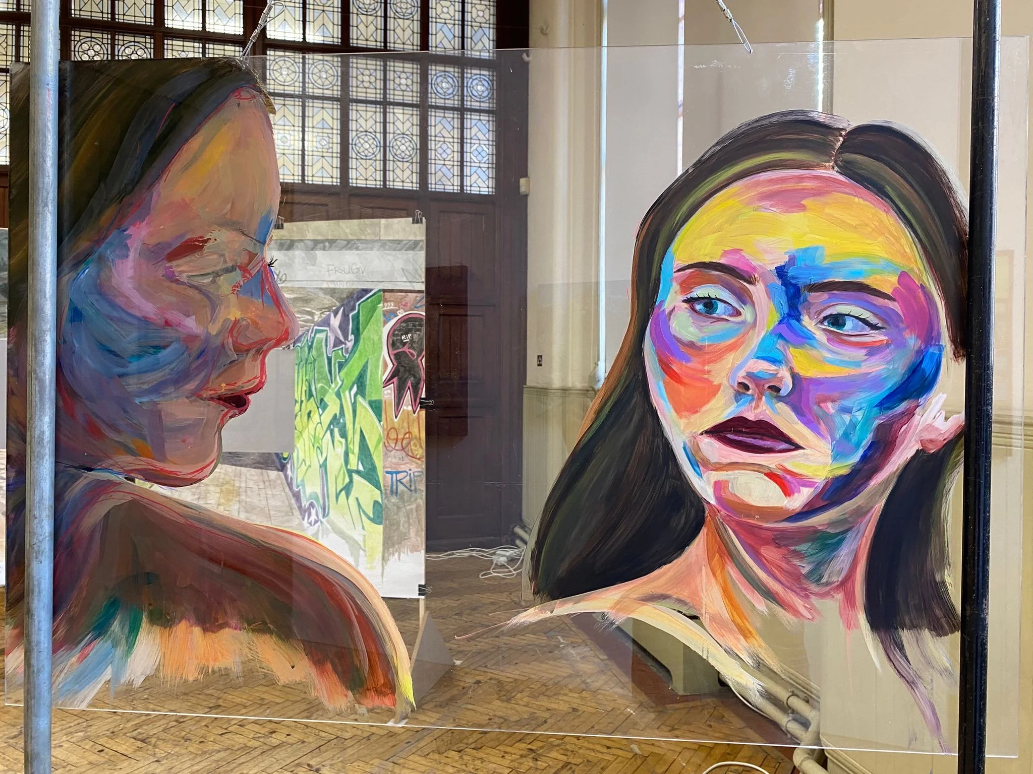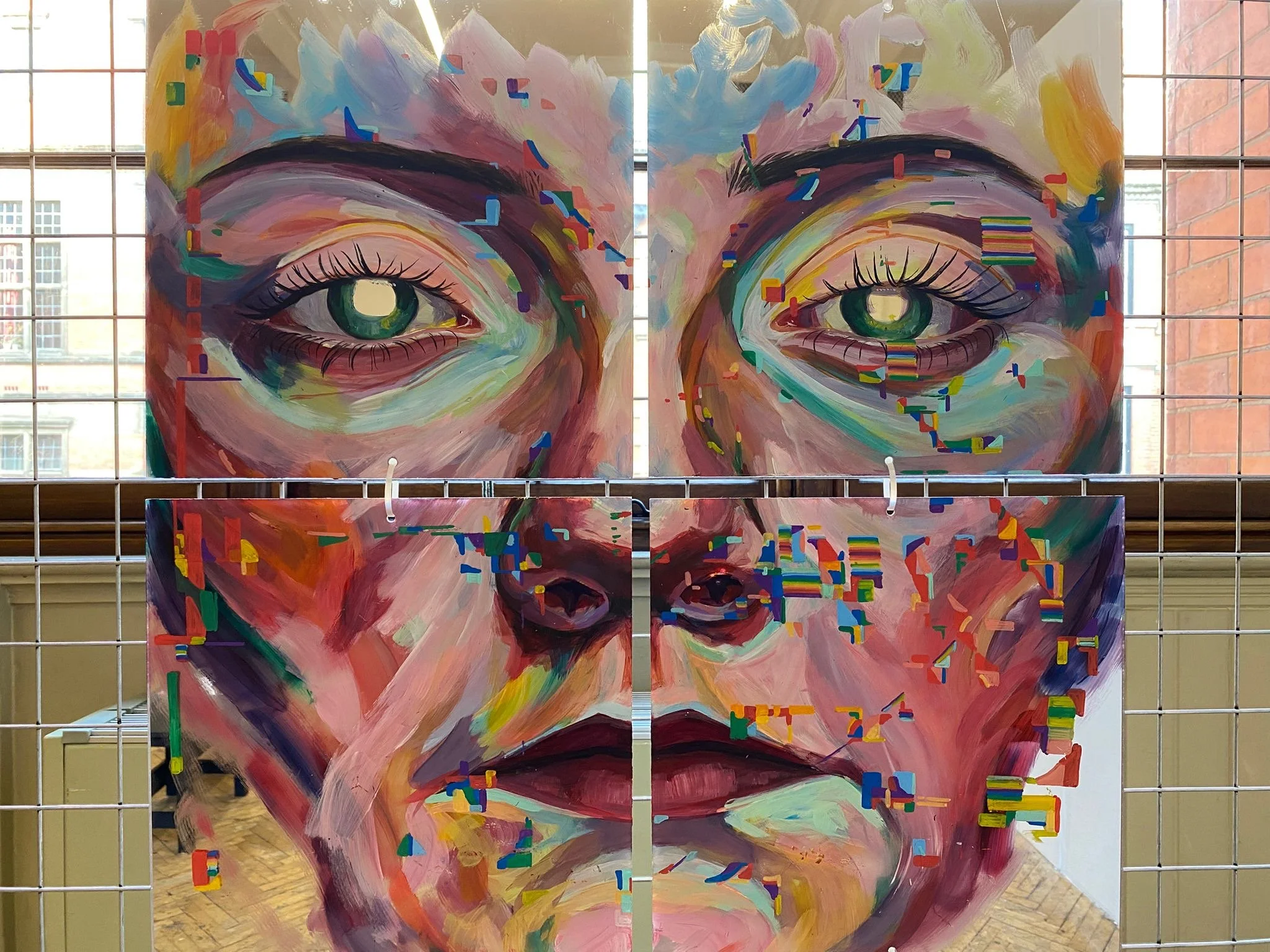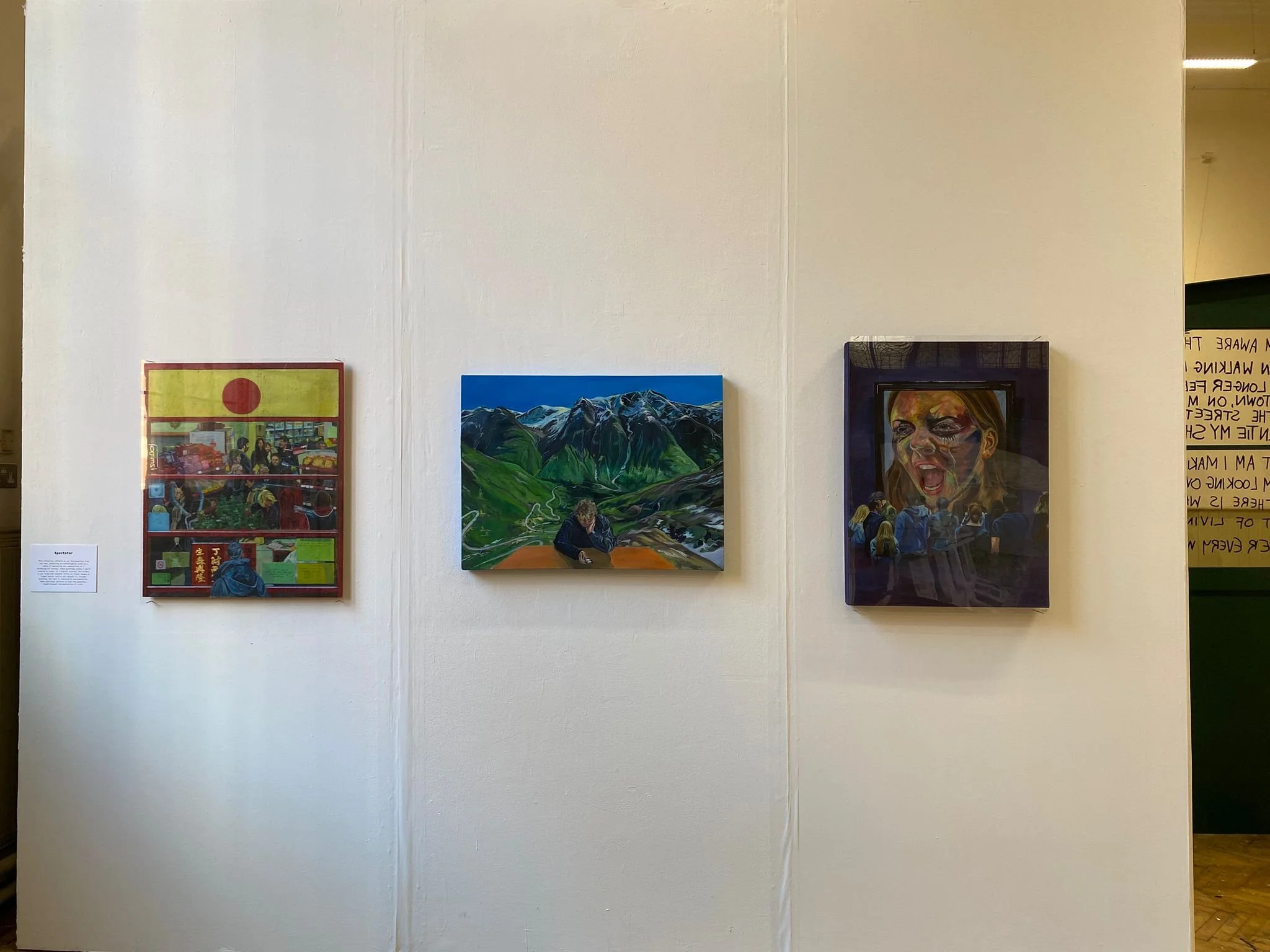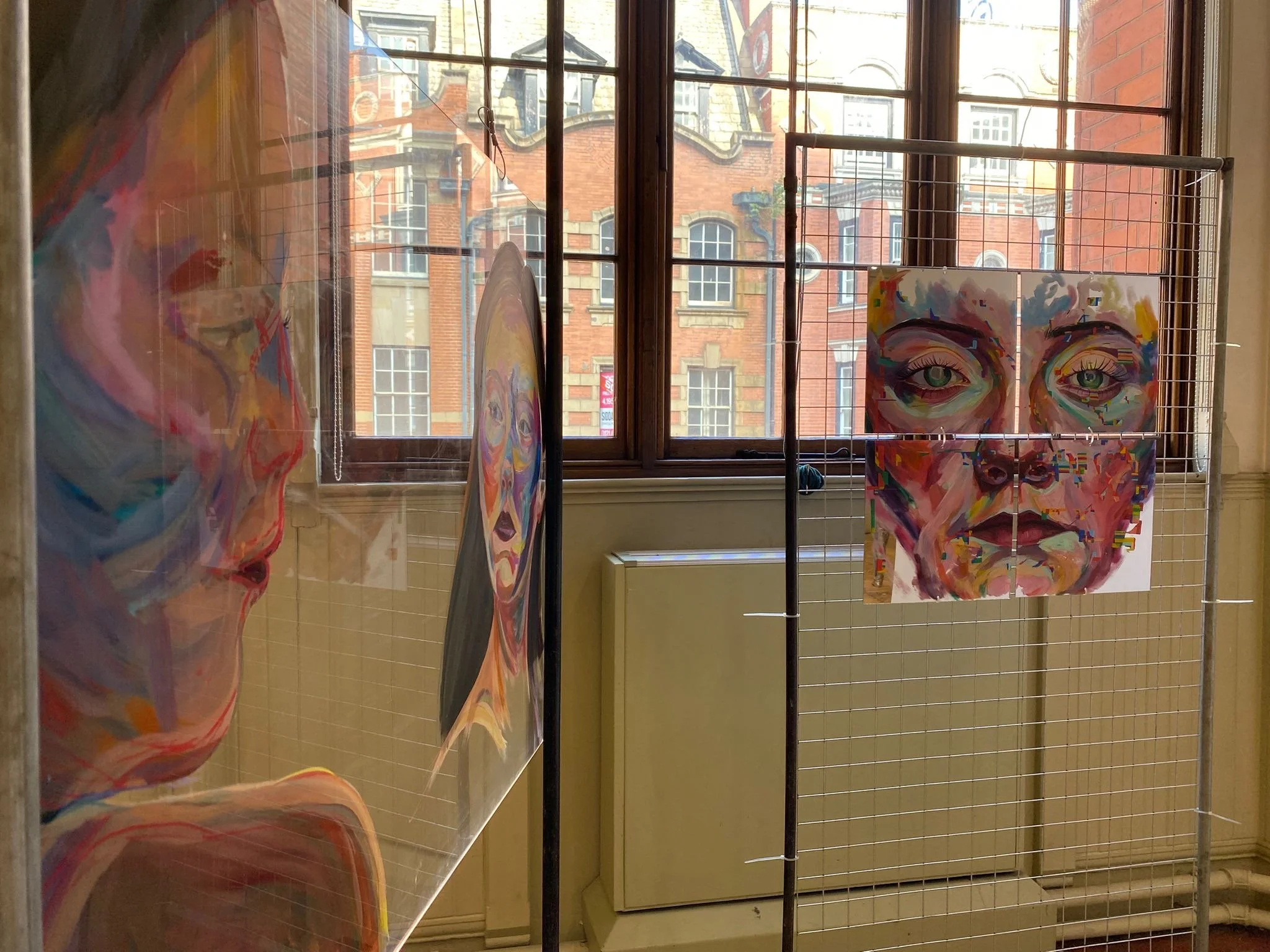 Ranging in materials, each work reflects a spectator looking into a simulated world.