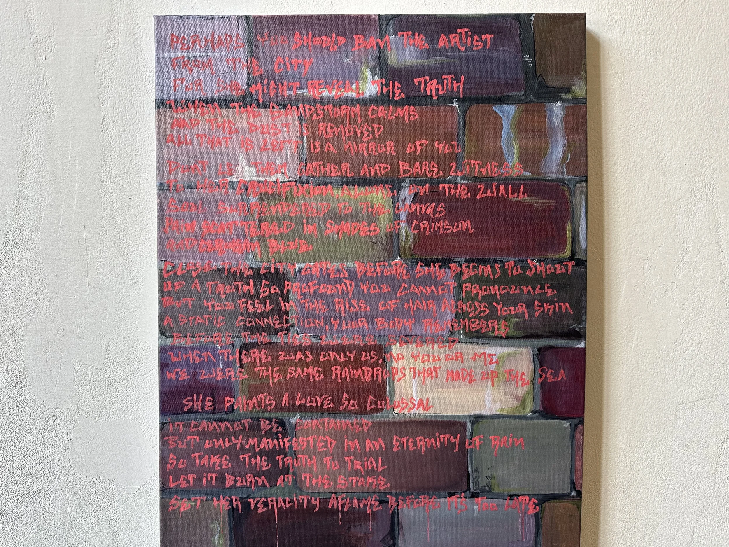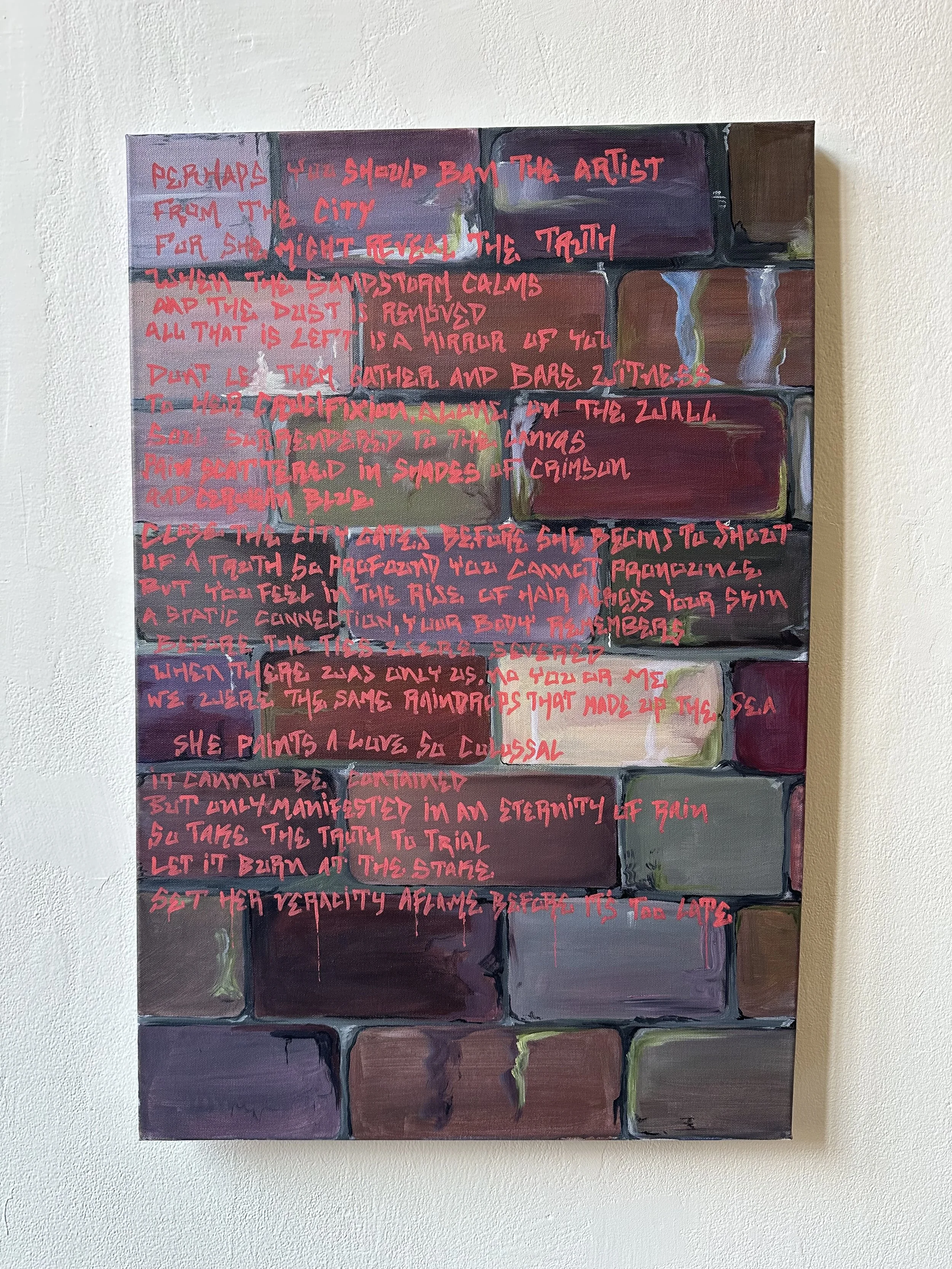 Exploring pre-technological craft as a means of addressing the complexities of a technological society, these paintings convey a world reduced to signs.